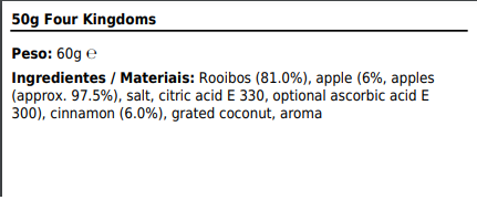 Four Kingdoms 50gr 7,00 € Desconto de %. IVA incluído. Partilhar O produto estará disponível para compra brevemente. Rooibos Maçã Canela Iogurte Rooibos é uma planta que não contém teína, por isso é ideal para consumir em qualquer altura ou para quem é hipertenso ou um pouco nervoso. Fornece-nos uma grande variedade de propriedades como antioxidantes, remineralizantes, diuréticas ou balanceadoras do sistema nervoso. UTILIZAÇÃO: 2-3 gramas por 200 ml a 95ºC e deixar descansar 4-5 minutos. Tags antioxidanterooiboshipertenso Características