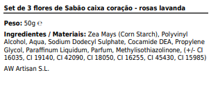 Set de 3 flores de Sabão caixa coração - Rosas lavanda 2,95 € Desconto de %. IVA incluído. Partilhar Comprar Contactar Dimensões7x8x4 (cm), 0,224L, 0,223Kg/L Tags flores sabãolavanda Características