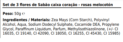 Set de 3 flores de Sabão caixa coração - rosas melocotón 2,95 € Desconto de %. IVA incluído. Partilhar O produto estará disponível para compra brevemente. Dimensões7x8x4 (cm), 0.224L, 0.223Kg/L Tags flores sabãorosas melocoton Características