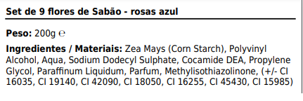 Set de 9 flores de Sabão - rosas azul 5,99 € Desconto de %. IVA incluído. Partilhar O produto estará disponível para compra brevemente. Dimensões9x9x4 (cm), 0.324L, 0.617Kg/L